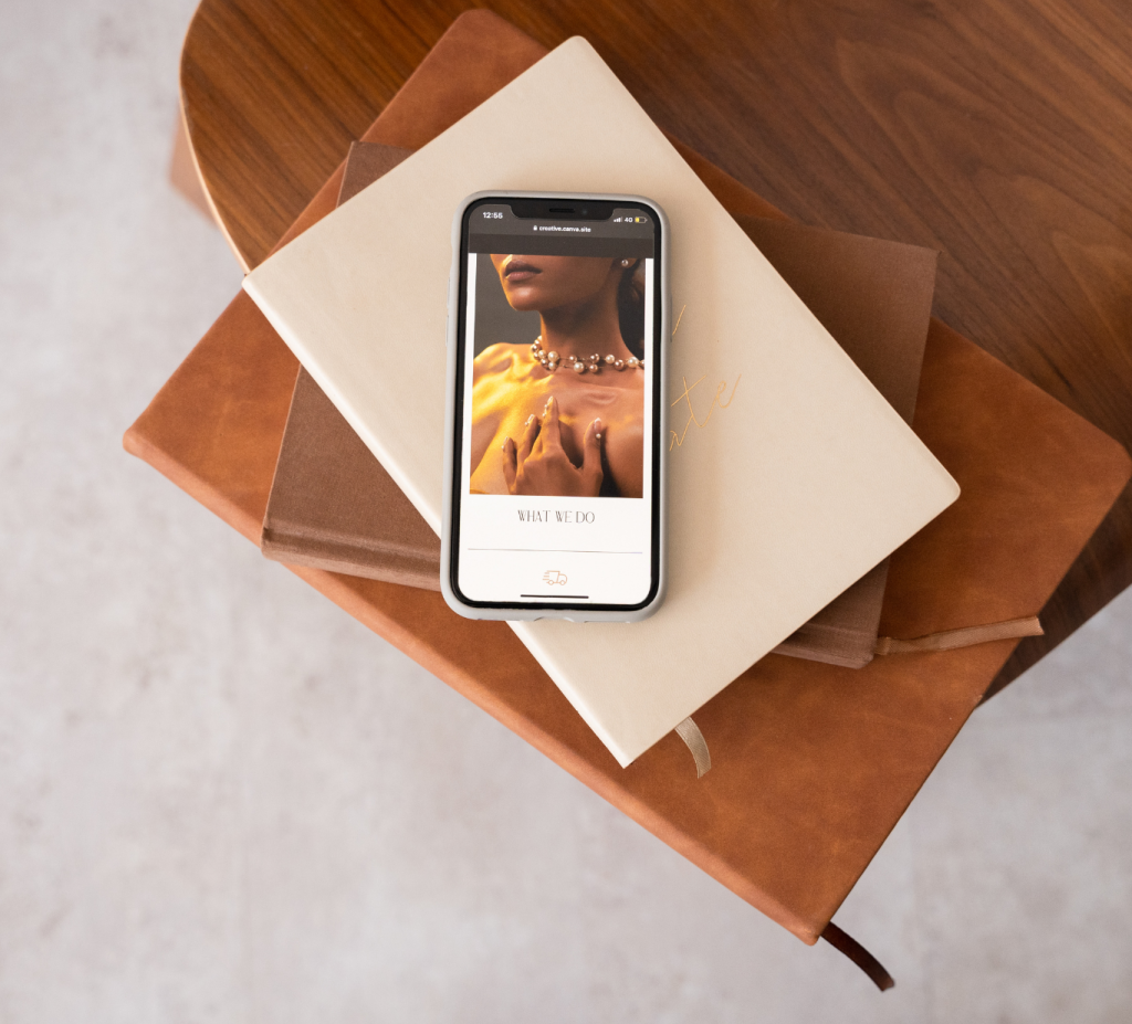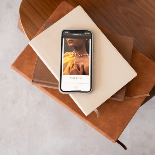 Erstellung einer Portfolio-Galerie mit Lightbox-Funktion, optimiert für hochauflösende Bilder. Farbkonzept in Schwarz, Weiß und Taupe für maximale Bildwirkung.